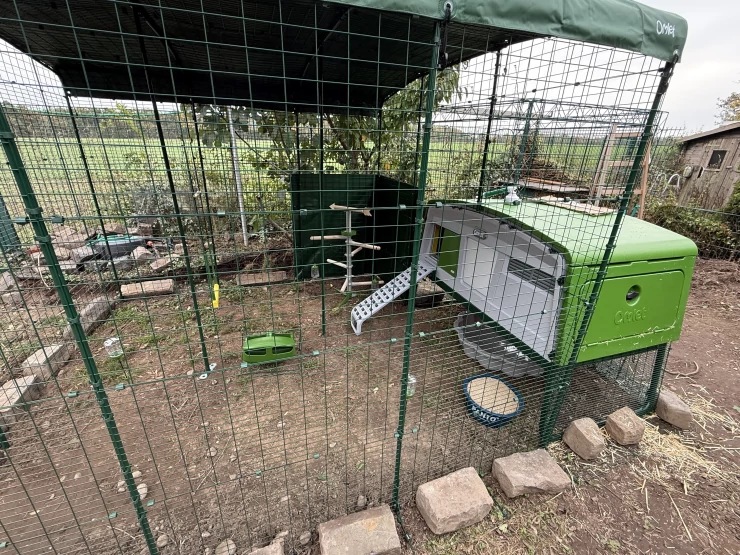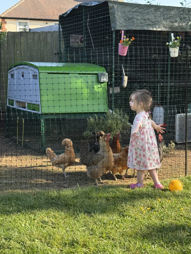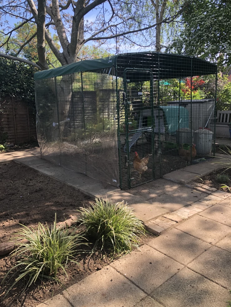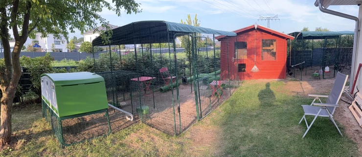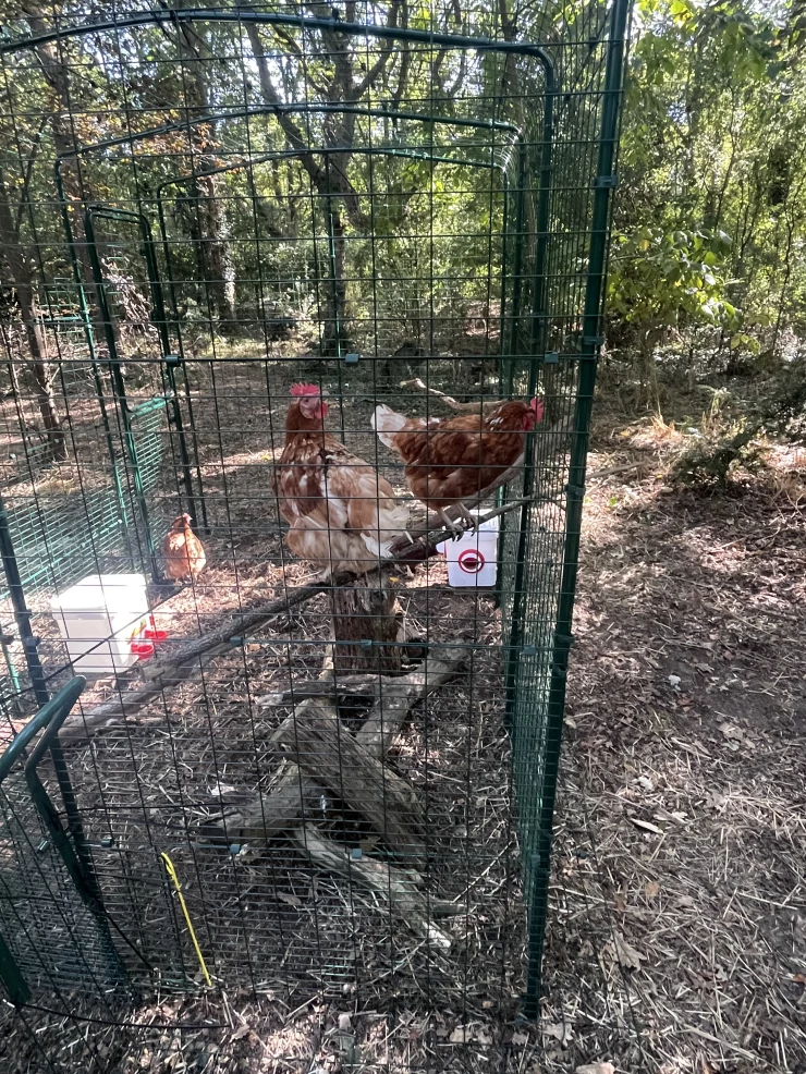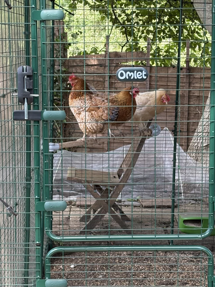 Caption: De meiden, die nu genieten van hun derde kippenrenuitbreiding (nemen het langzaam over, haha)