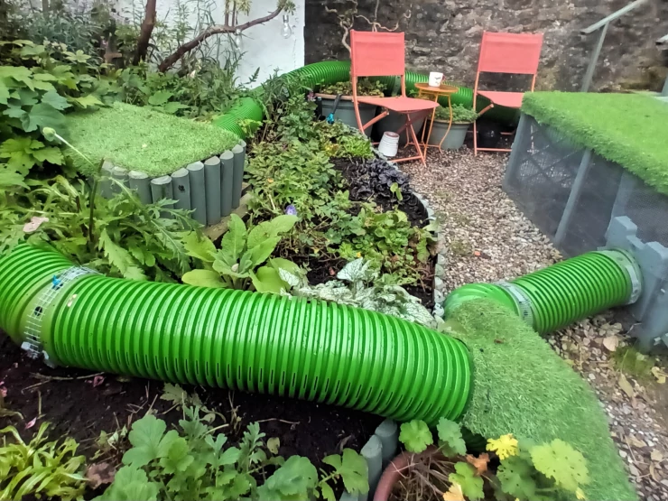 Caption: Onze familie van 5 konijnen is dol op de zippy tubes. ze hebben ongeveer 12 meter die toegang geeft tot 5 gebieden in onze kleine tuin.