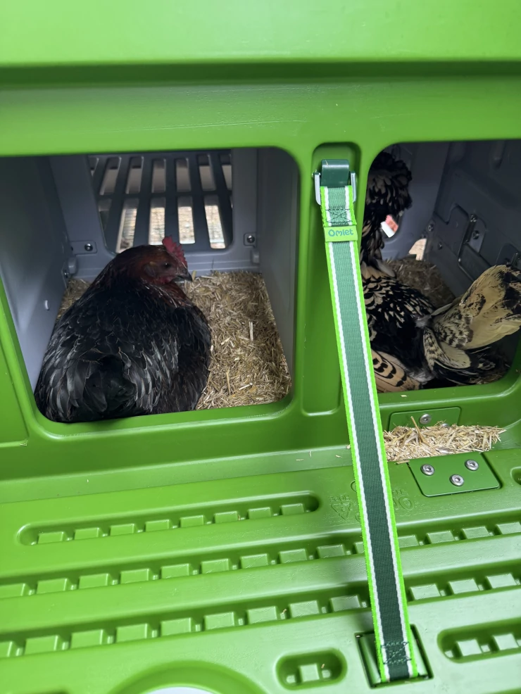 Caption: Kippen zo blij met hun nieuwe huis, & mij! schoner. gemakkelijker. beter