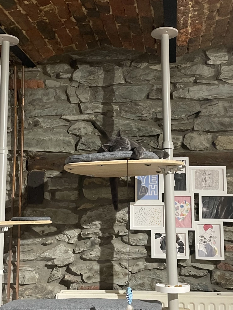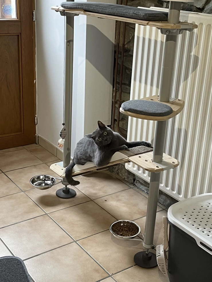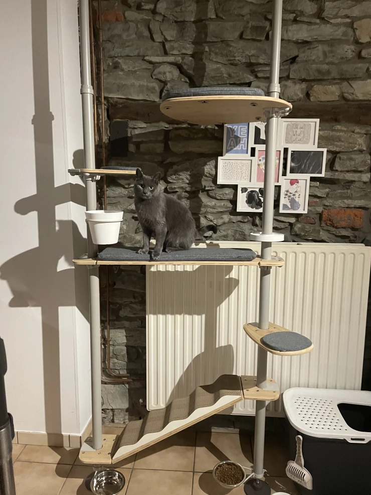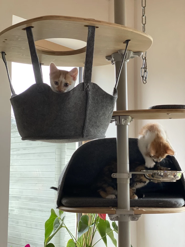 Caption: De kittens houden van de verscheidenheid aan activiteiten die hun kattenboom biedt
