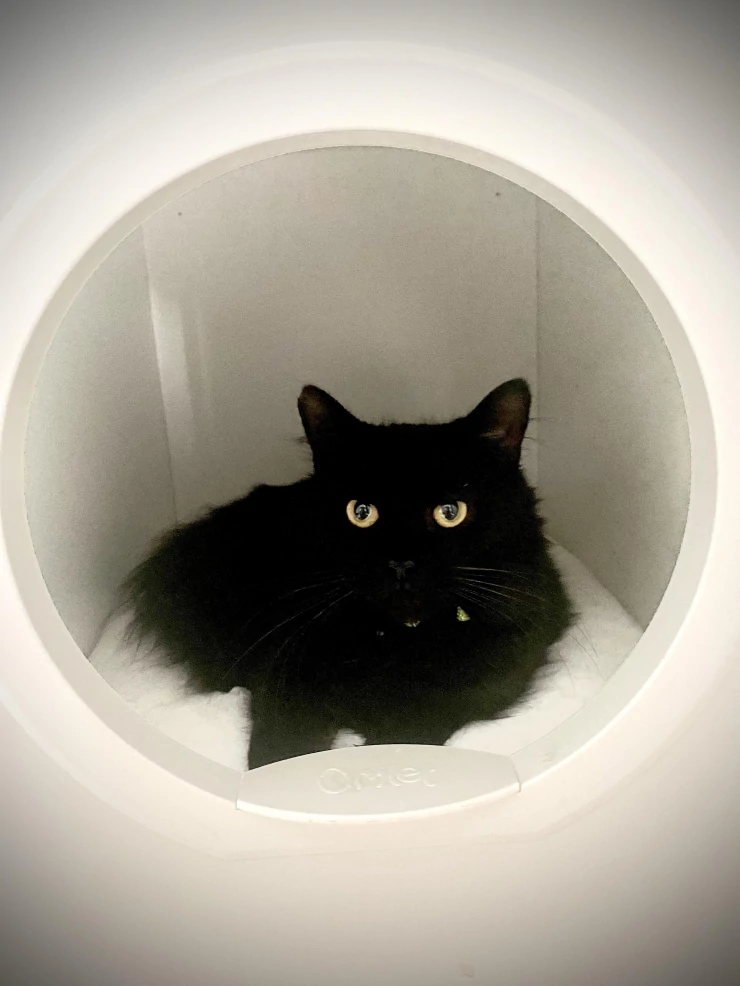 Caption: Deze kat voelt zich erg veilig in zijn boom