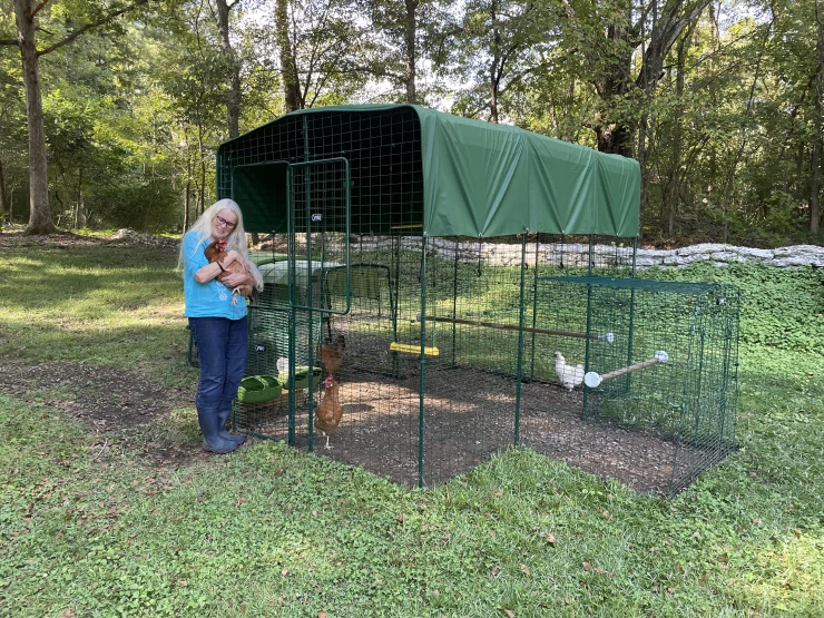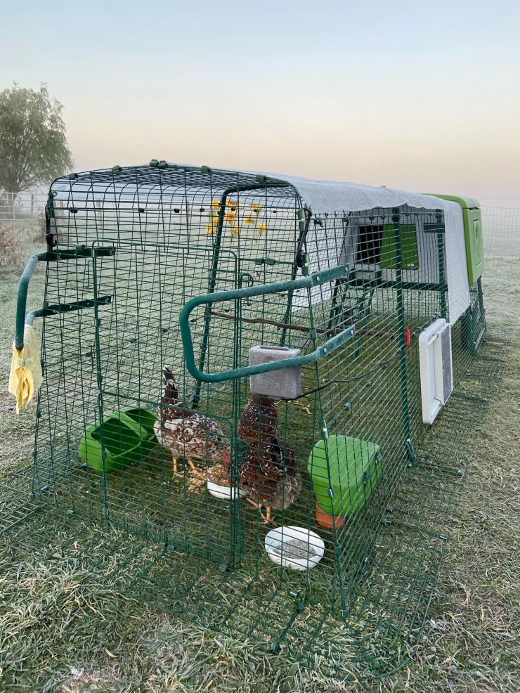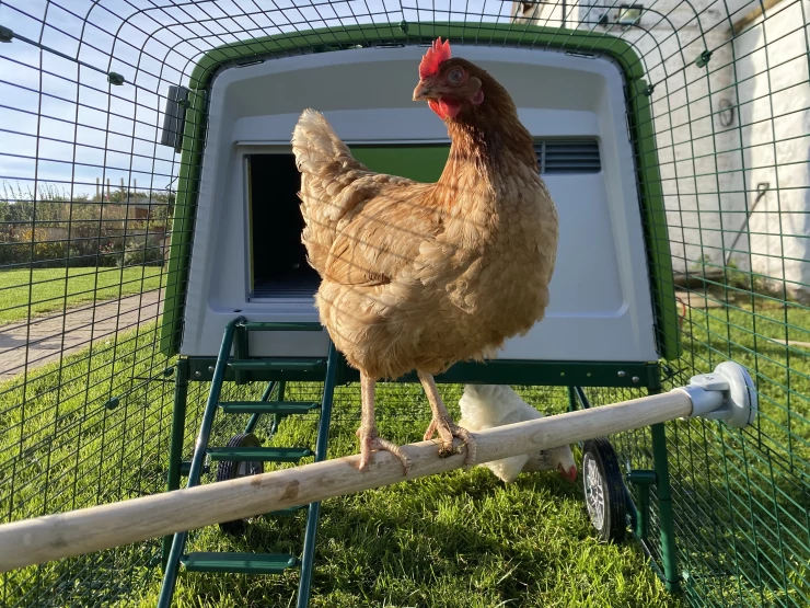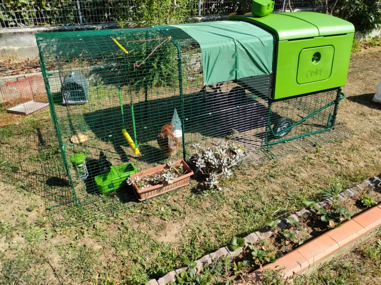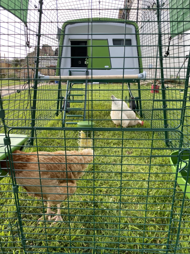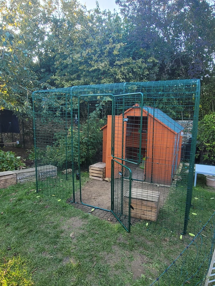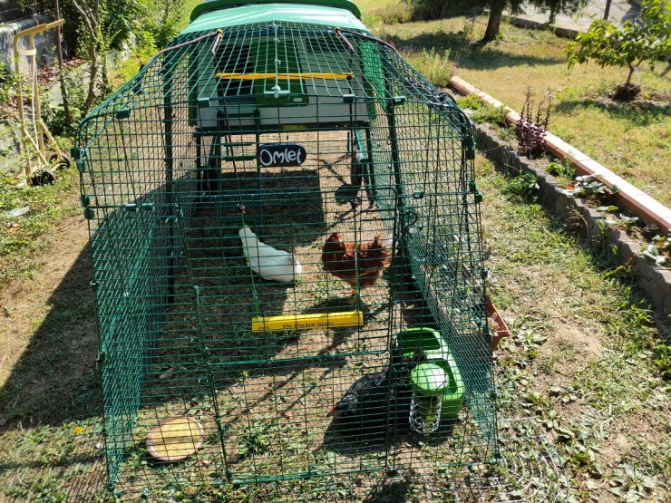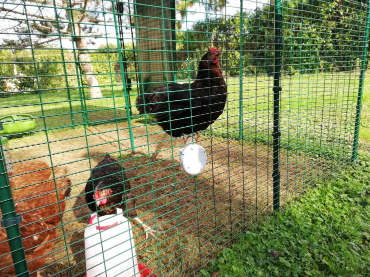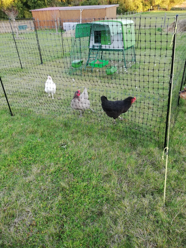 Caption: De omheining hoog genoeg is om te voorkomen dat de kippen eroverheen vliegen