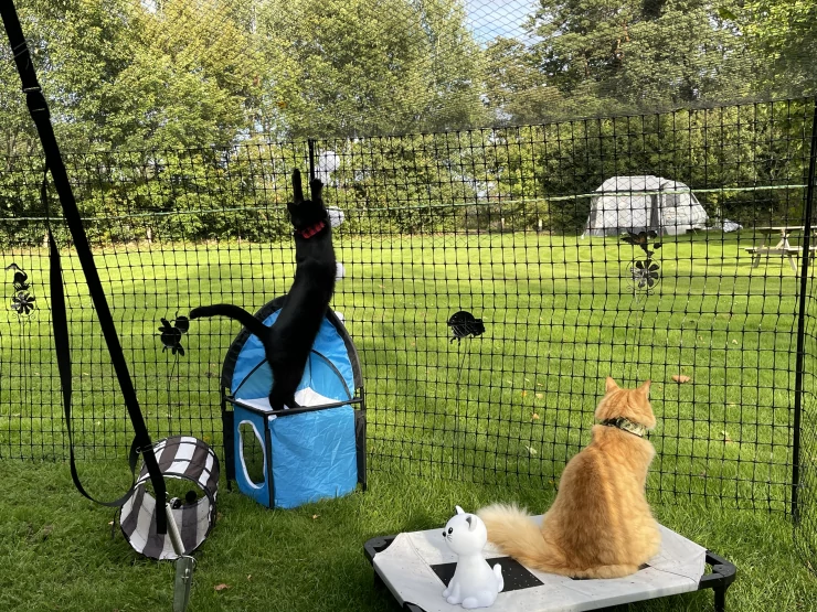 Caption: Cookie en bubbles houden van hun nieuwe huis.