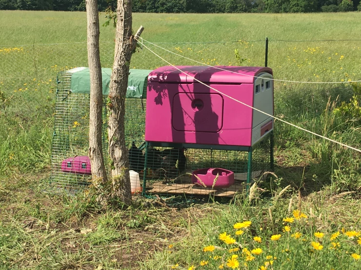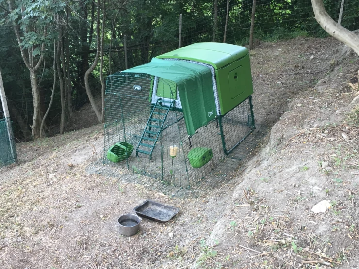 Caption: Het hok kan in verschillende soorten achtertuinen worden geplaatst