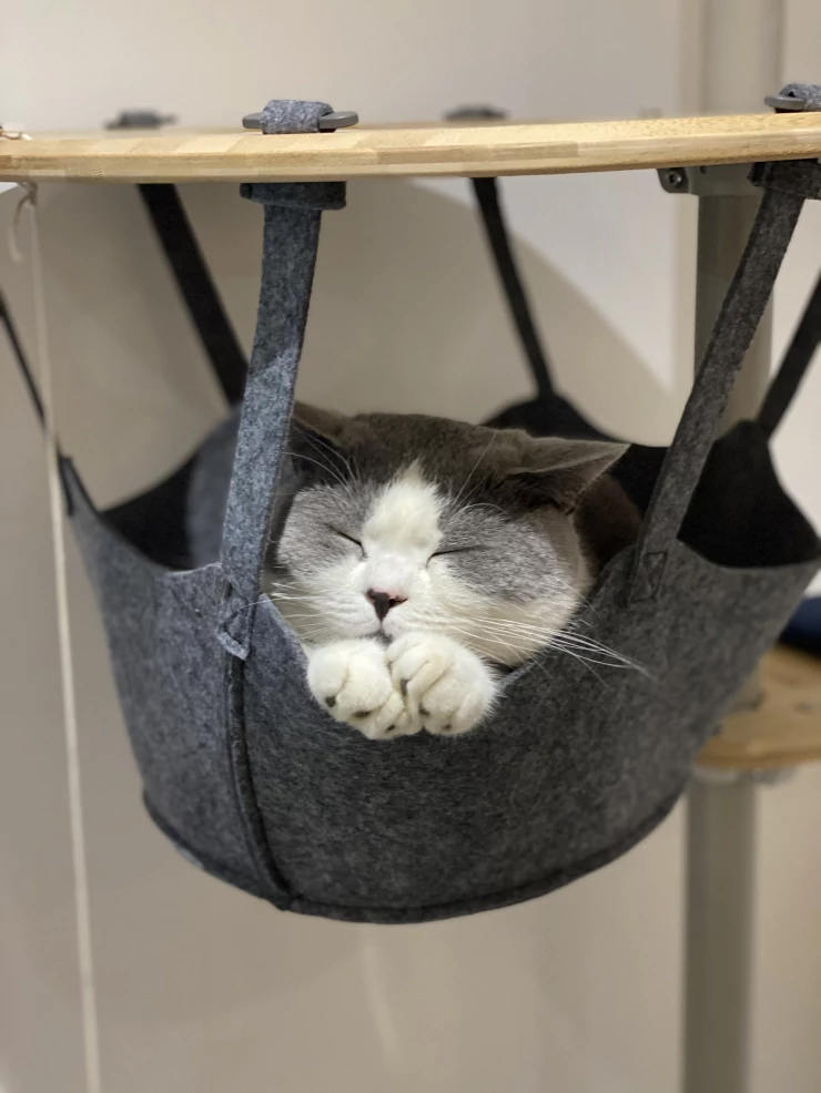 Caption: Bengaalse kat slapen op kat boom hangmat