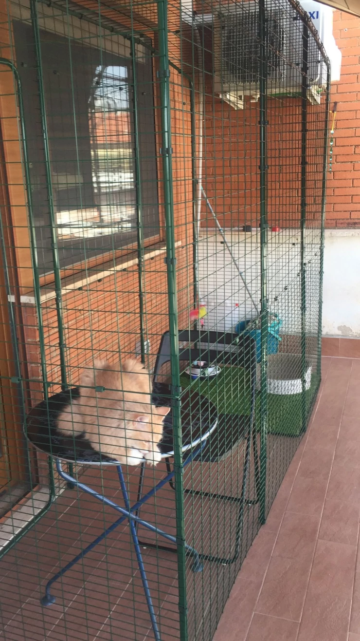 Caption: Kat in Omlet kat balkon ren