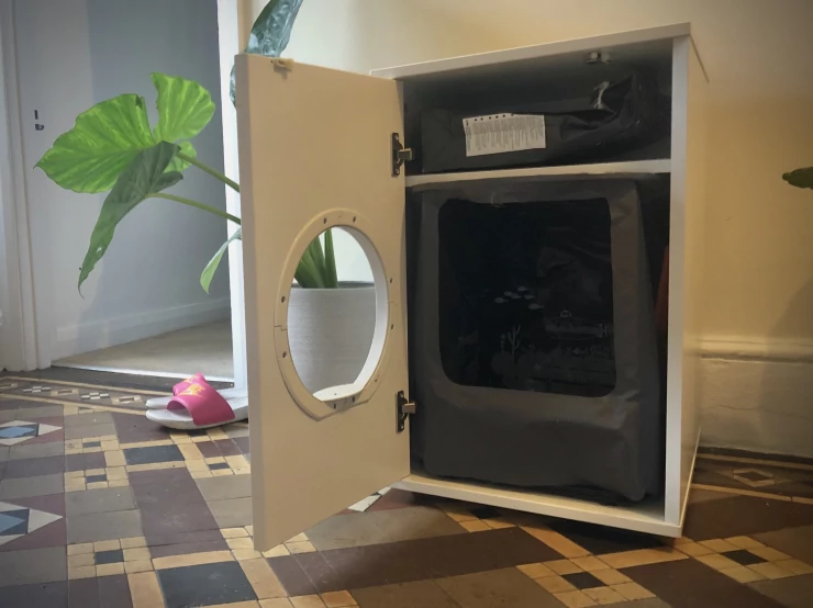 Caption: Maya kattenbak inloop met opbergruimte