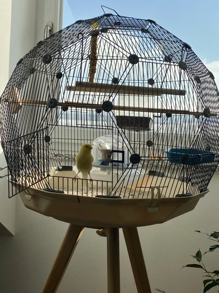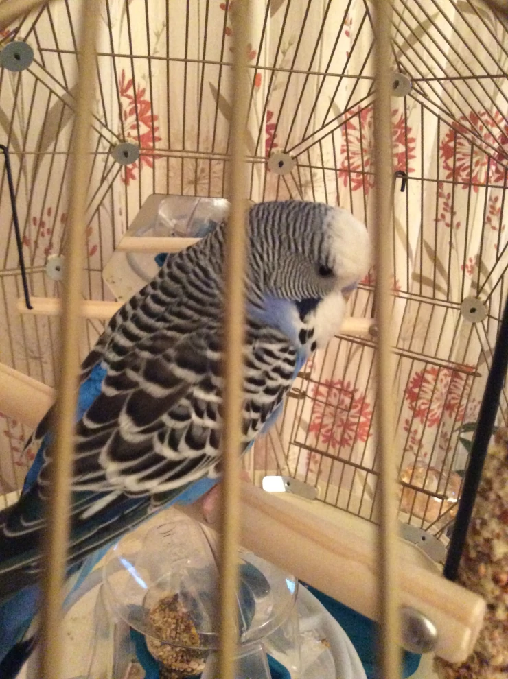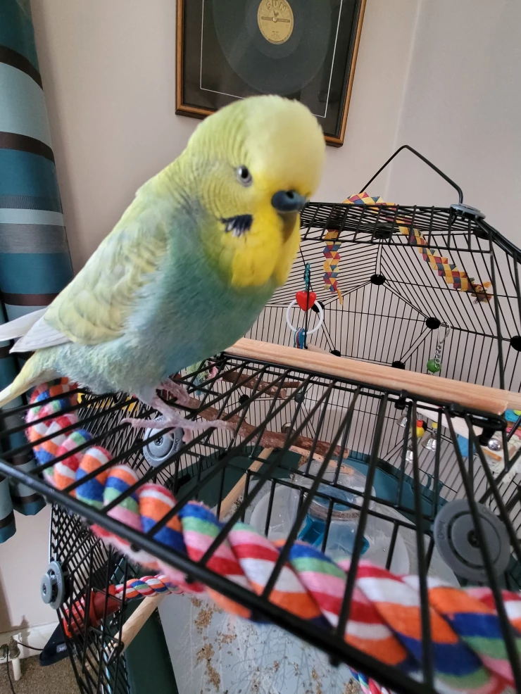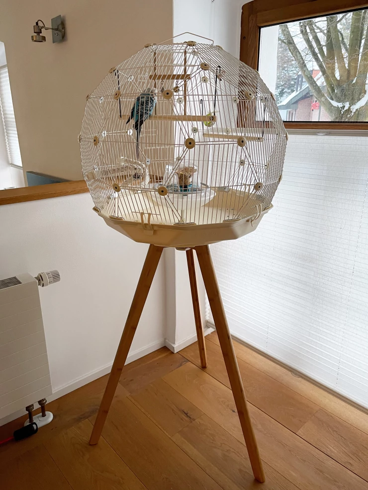 Caption: Mijn parkietje heeft een nieuwe kooi