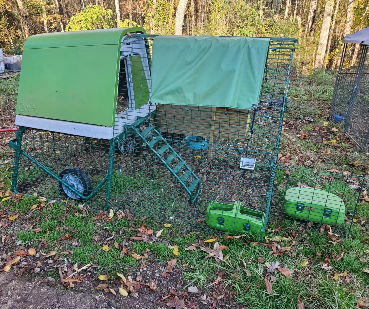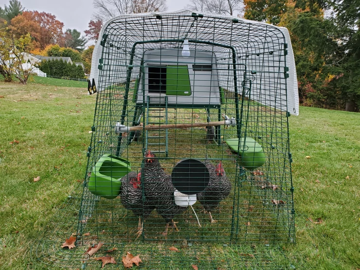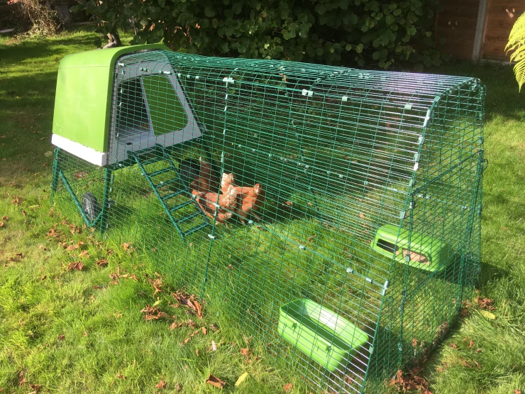 Caption: Omlet green Eglu Go verhoogd kippenhok en ren met overkapping