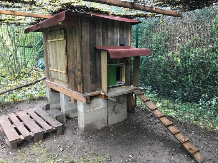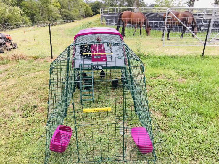 Caption: Het hok kan gemakkelijk worden verplaatst om uw kippen verse stukken gras te bieden