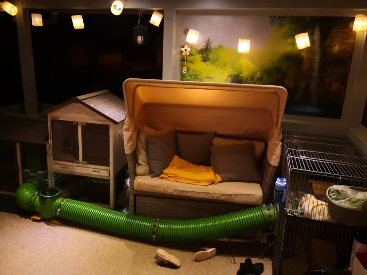 Caption: Zippi tunnel die konijnenhok met ren verbindt