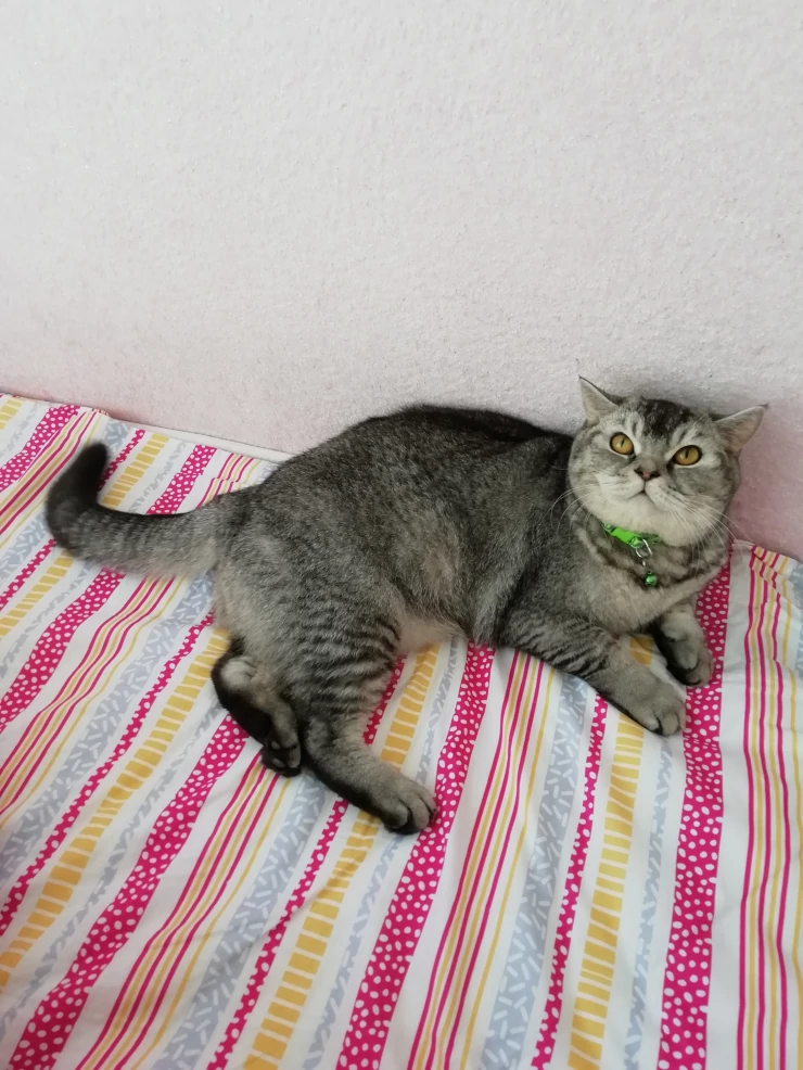 Caption: Britse korthaar tabby kat ligt