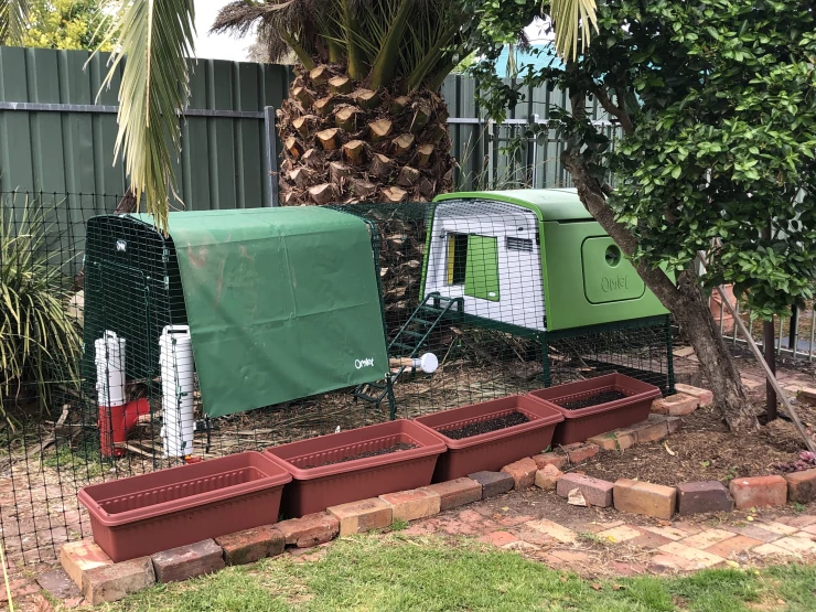 Caption: Omlet groen Eglu Cube groot kippenhok en ren met renafdekking