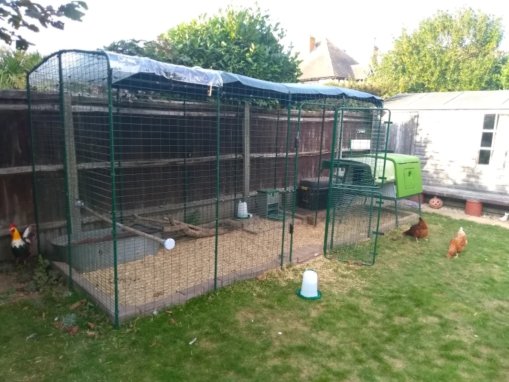 Caption: Omlet groen Eglu Cube groot kippenhok en ren met overkapping en Omlet kippenhekwerk