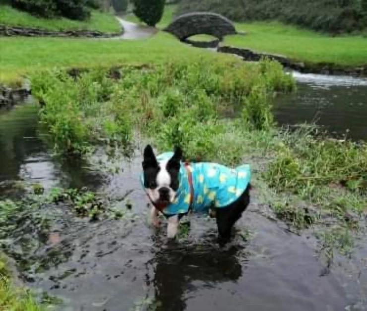 Caption: Hond liggend op Omlet verkoelende hondenmat