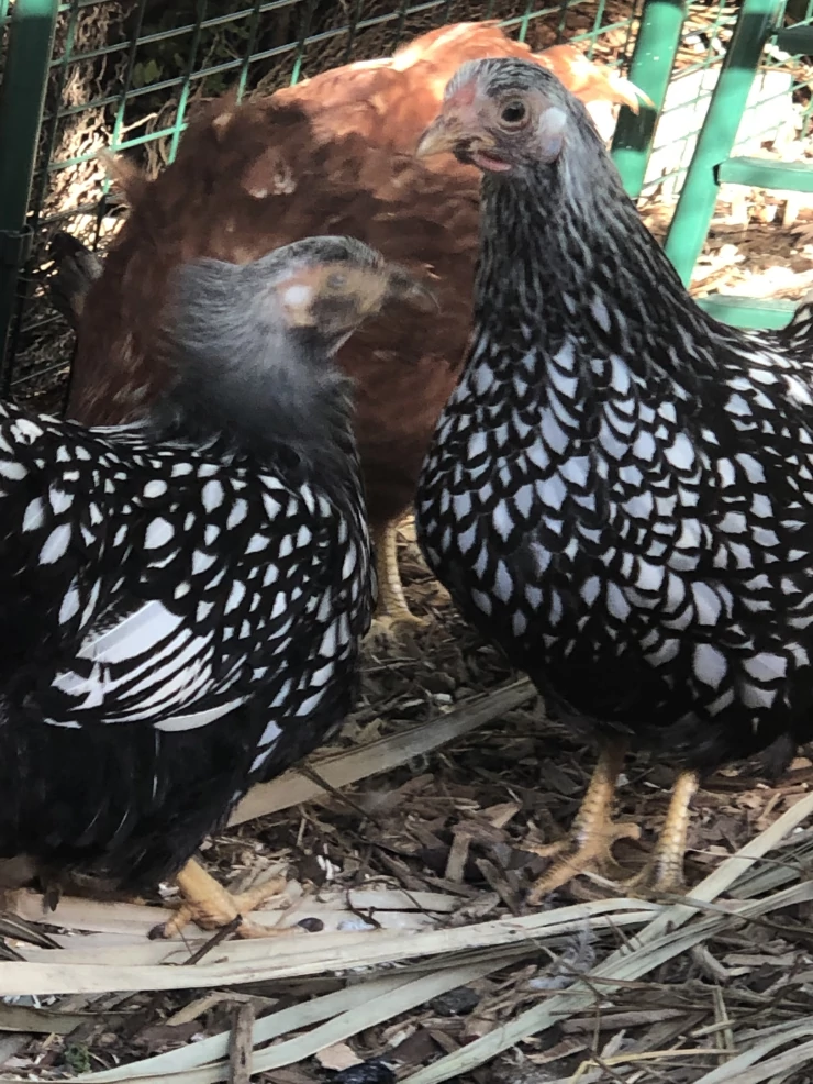 Caption: Sadie en Sybil, krielzilvergezoomde Wyandottes