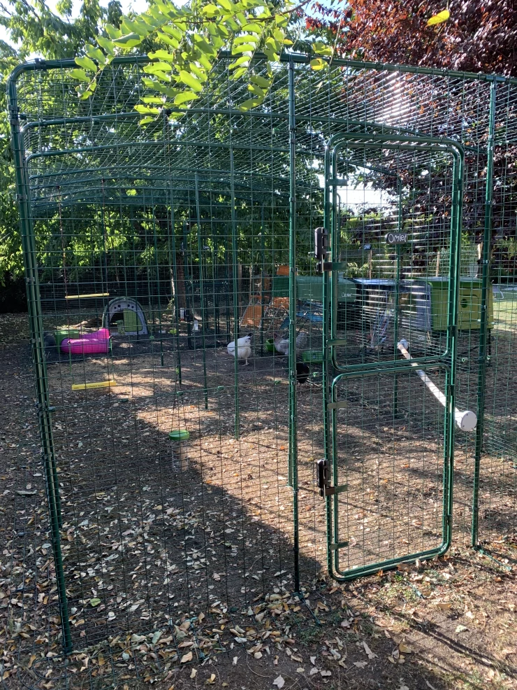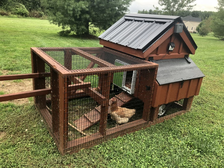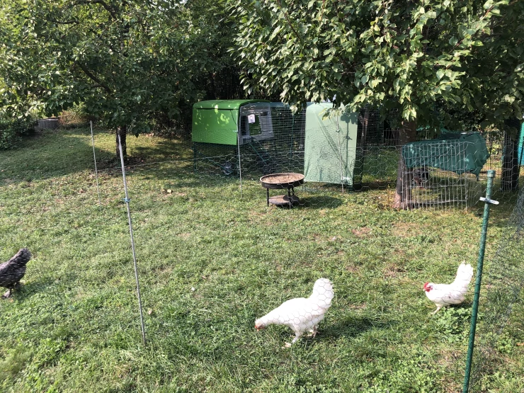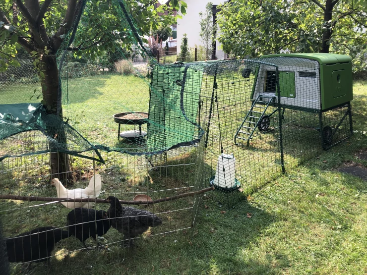 Caption: Een Eglu Cube kippenhok binnen een kippenhek.