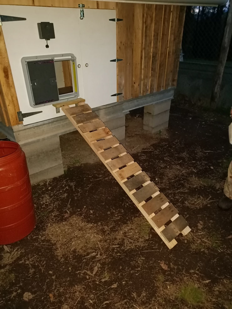 Caption: We houden van ons nieuwe hok. onze kippen gebruiken de ladder liever niet.
