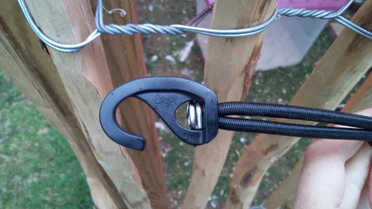Caption: Een bungee koord dat een schaduw naar beneden houdt.