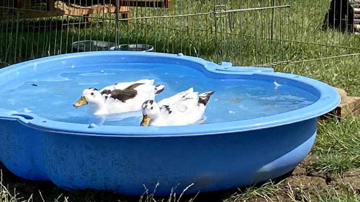 Caption: Mack en Mabel, mijn Magpie Call Ducks