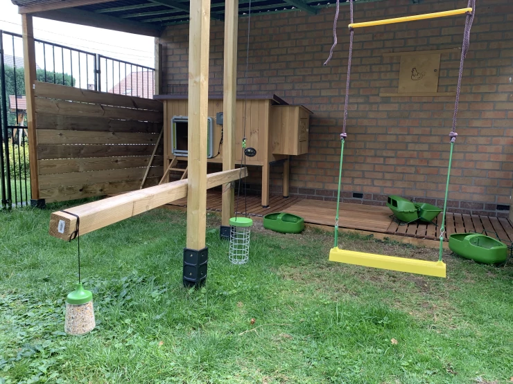Caption: Geef uw kippen genoeg om mee te spelen van de Omlet producten.