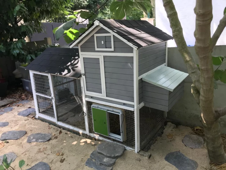 Caption: Als je van je kippen houdt, behandel ze dan met de Autodoor.
