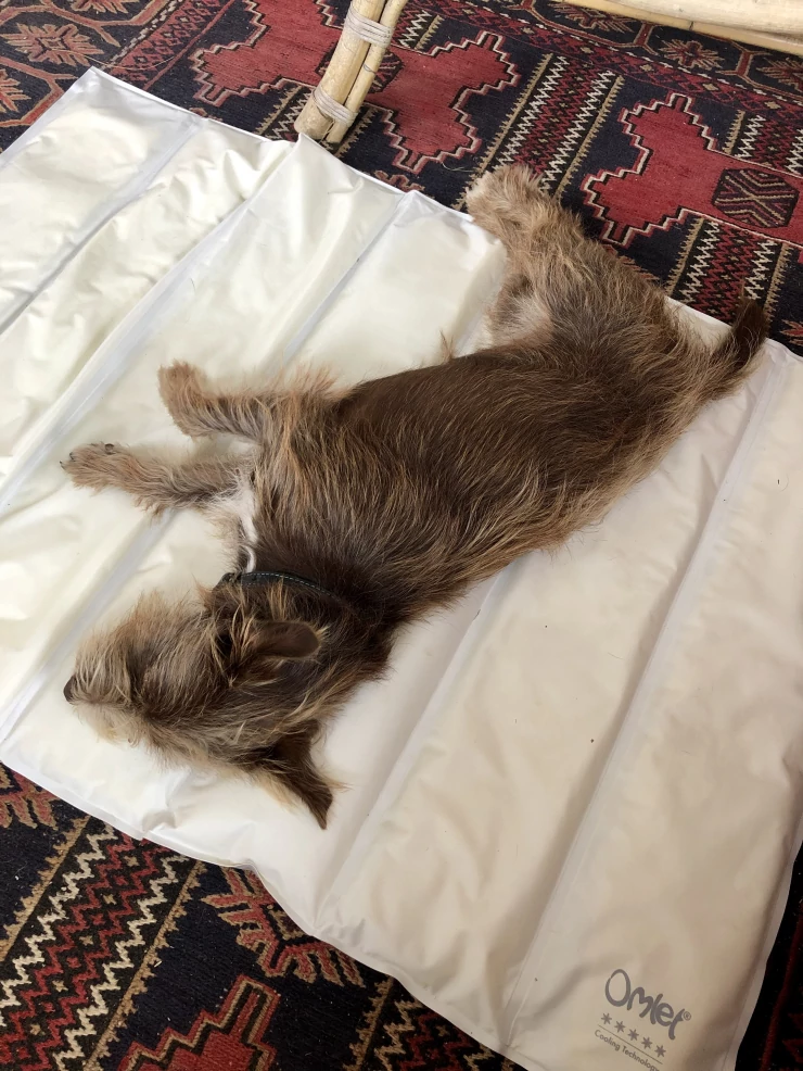 Caption: Genieten van de Omlet koelmat tijdens de hitteGolf!