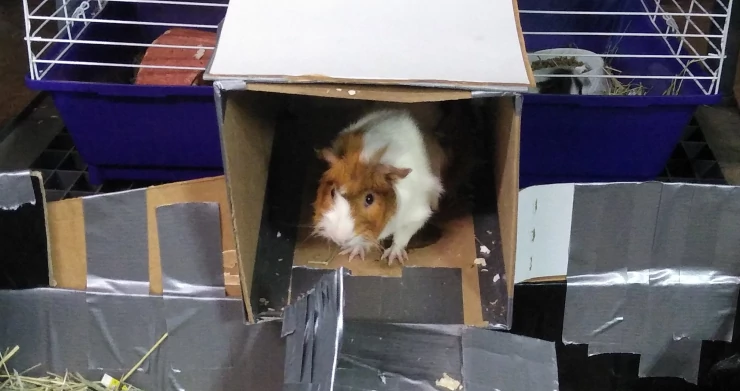 Caption: De Zippi konijnentunnel wordt gebruikt om cavia's buiten een huis te laten.