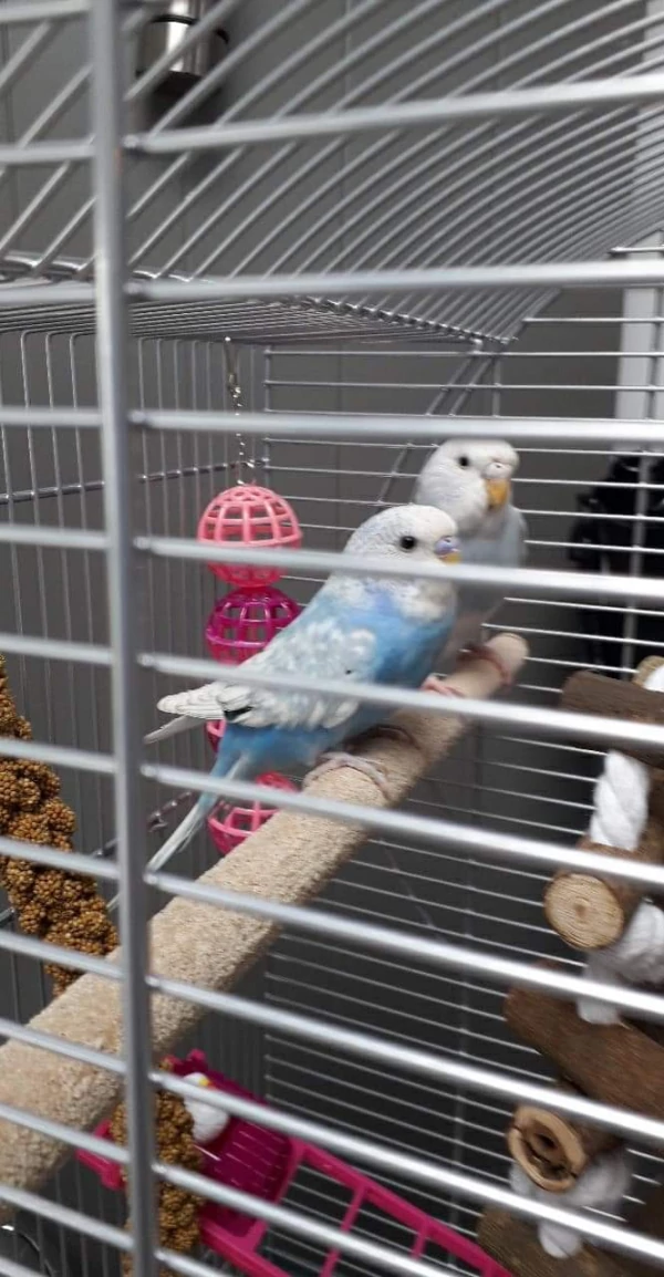 Caption: Parkieten in kooi