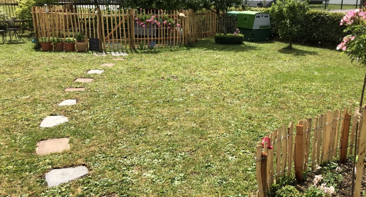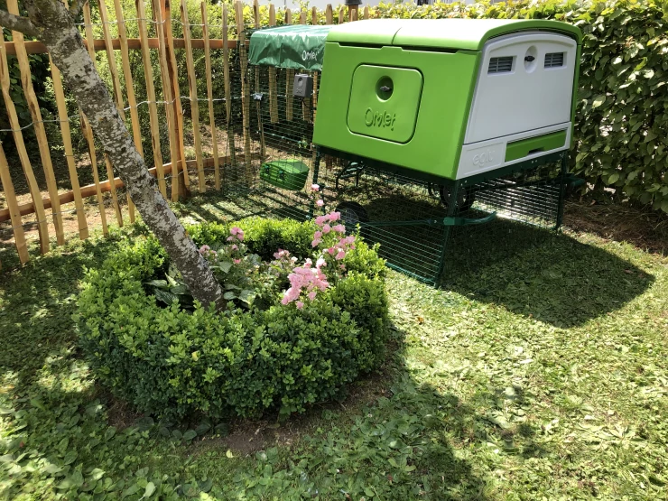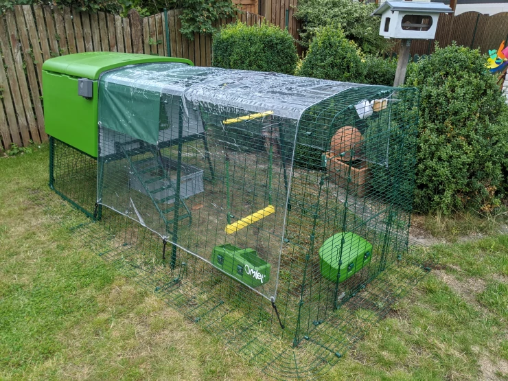 Caption: Groen Eglu Cube groot kippenhok en ren in Omlet inloop kippenren