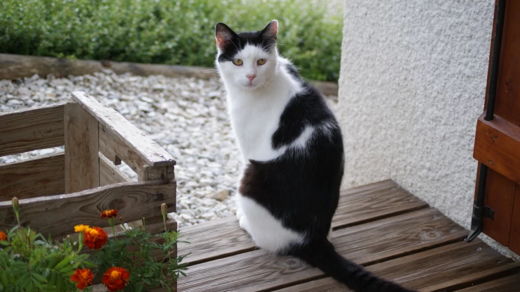 Caption: Die in een Omlet kippenhok kijkt om de automatische deuropener te zien.