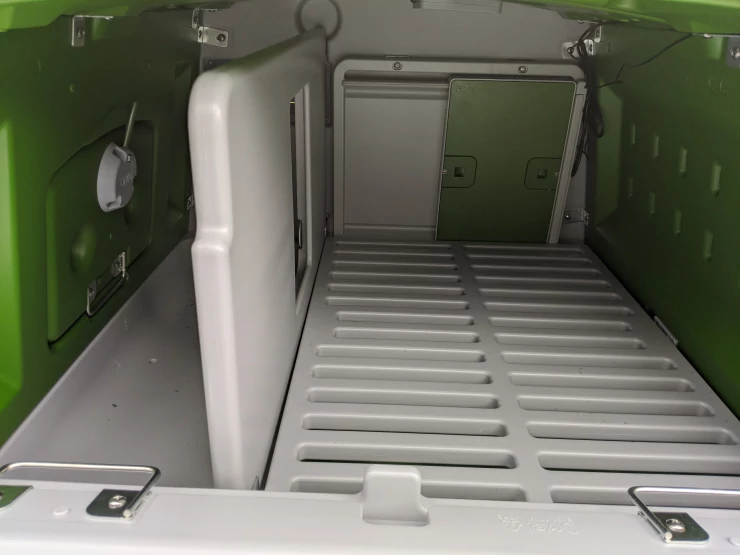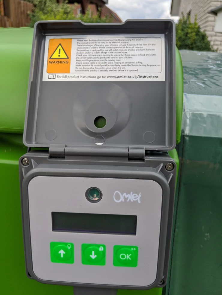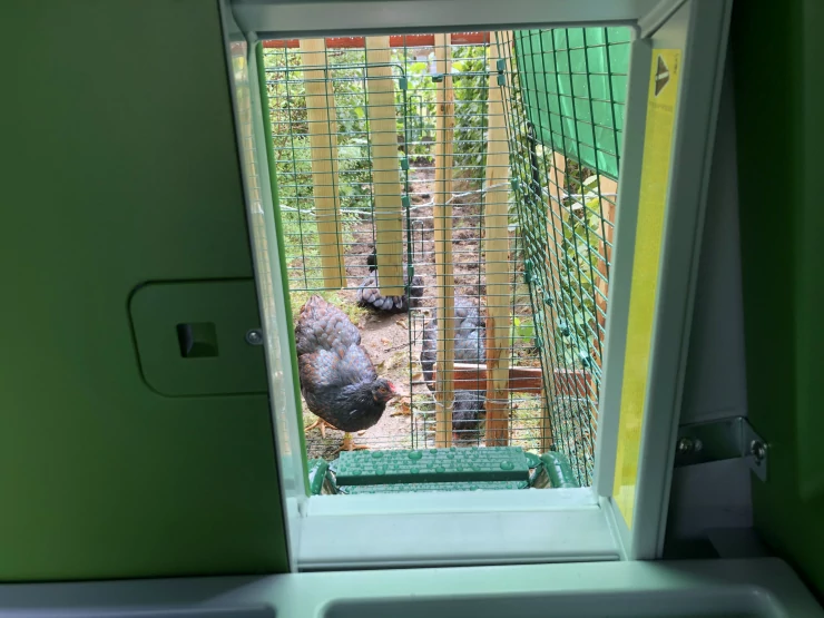 Caption: Omlet groene automatische kippenhok deur