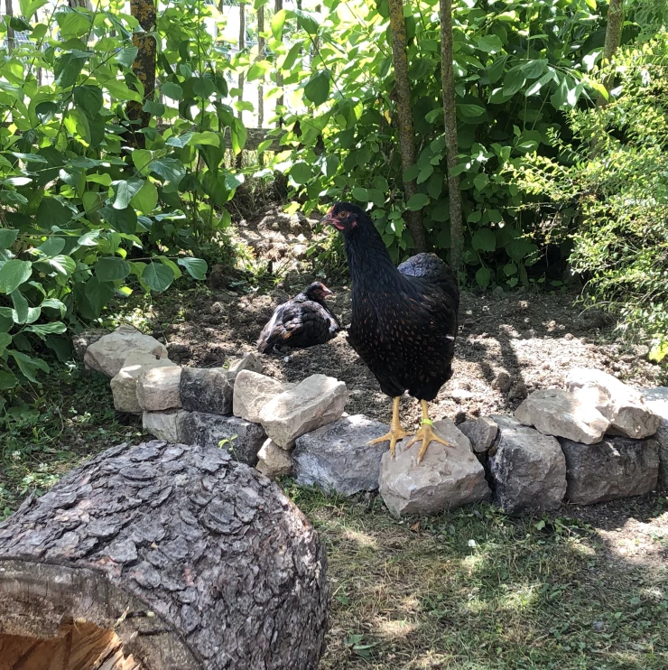 Caption: Kippen in de tuin