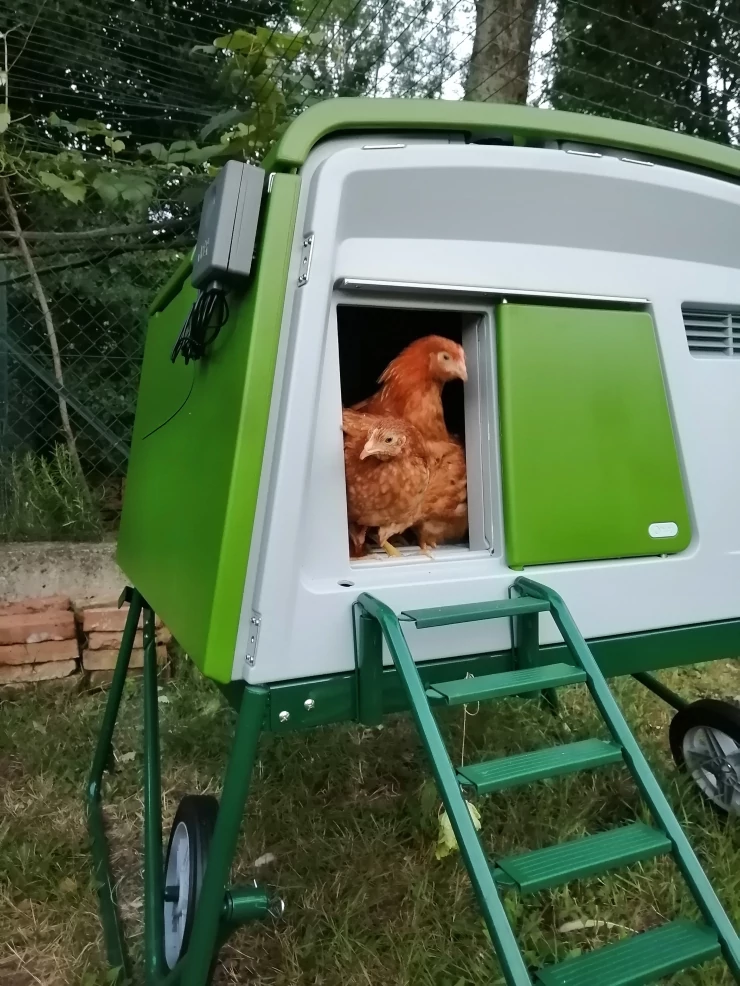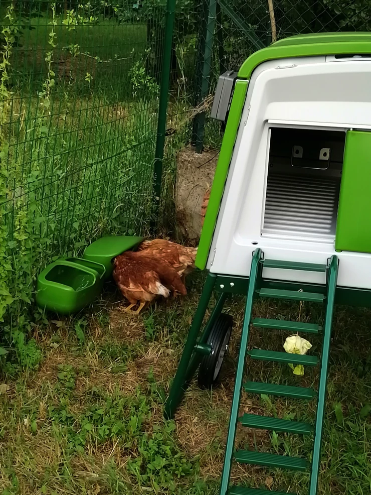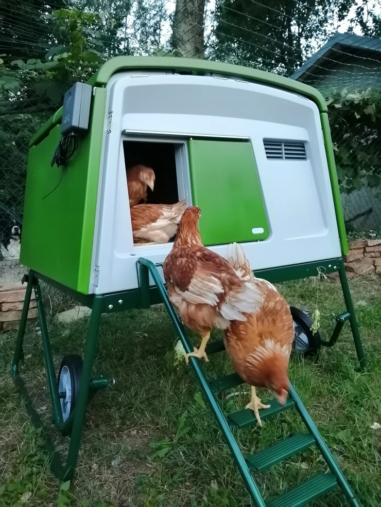 Caption: Green Eglu Cube groot kippenhok en ren met kippen