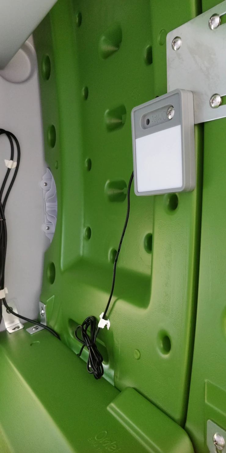 Caption: Het licht geïnstalleerd in mijn Eglu kippenhok.