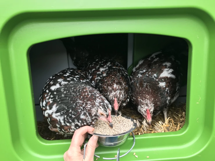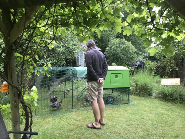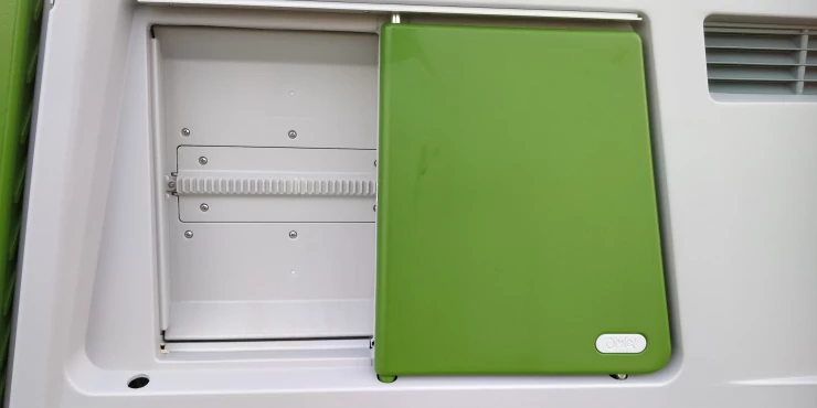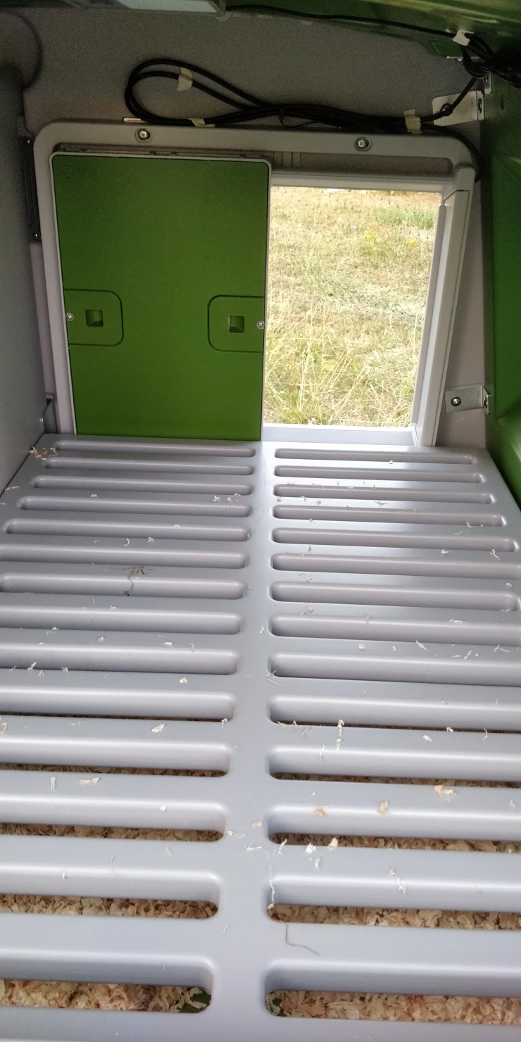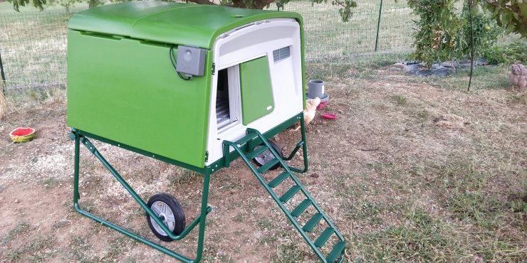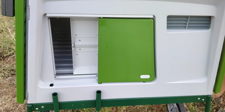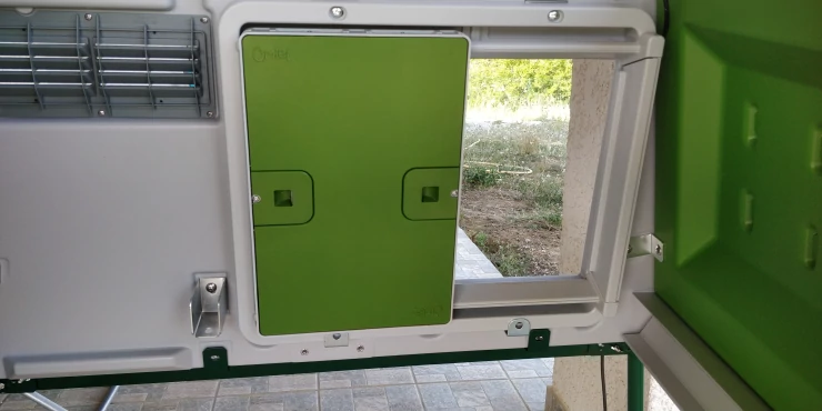 Caption: De automatische deuropener voor kippen geïnstalleerd in mijn Eglu Cube .