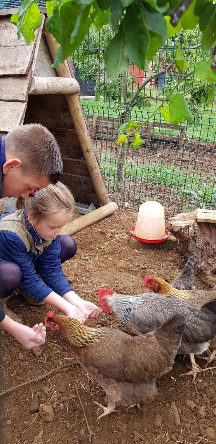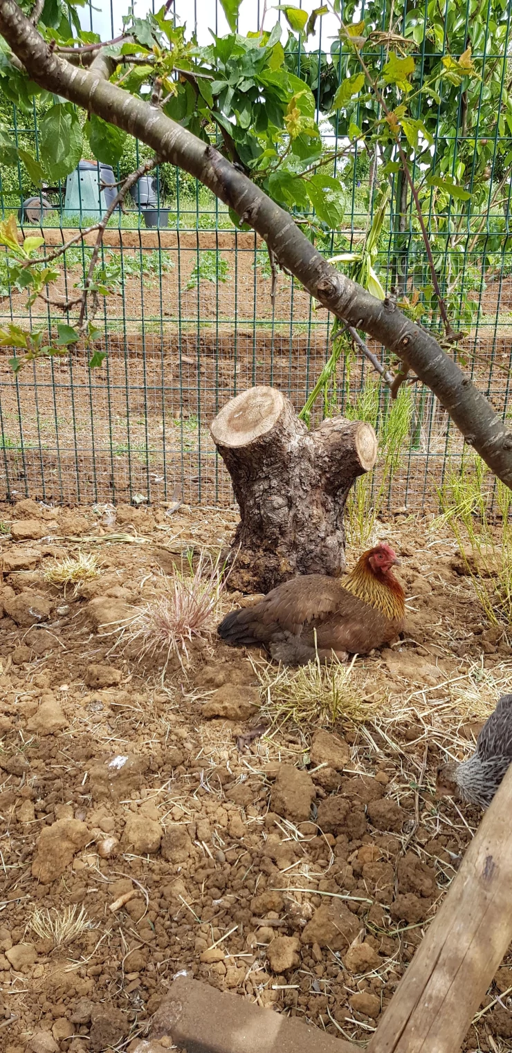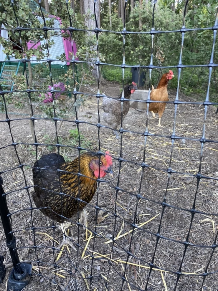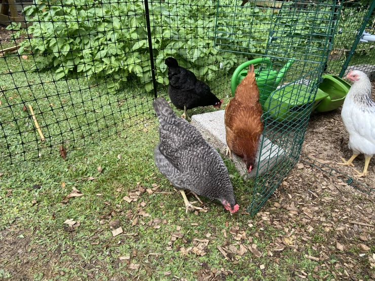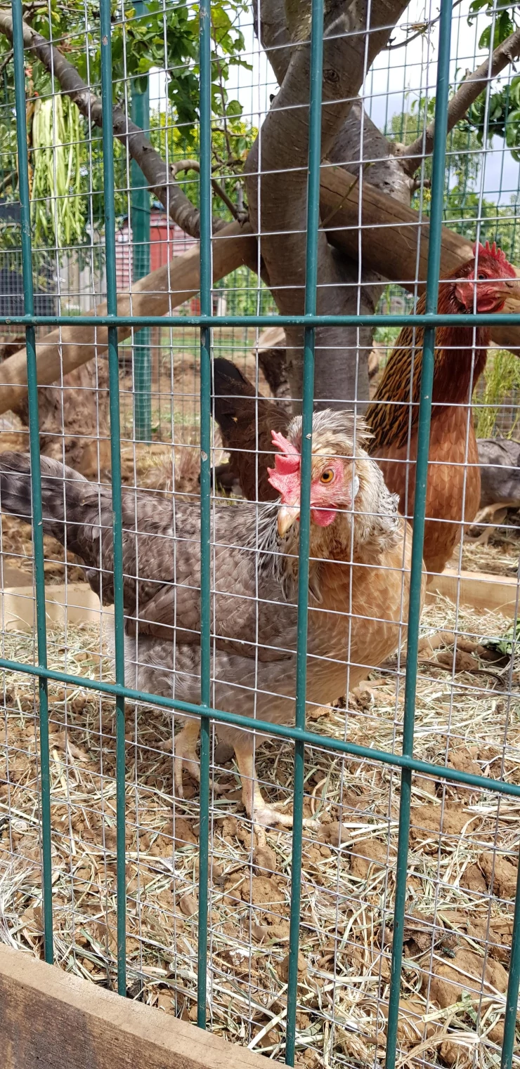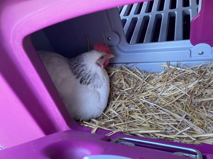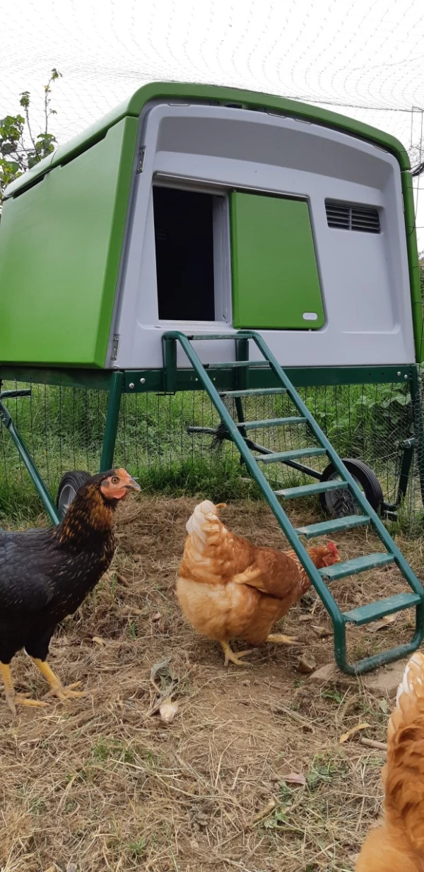 Caption: Kip geniet van hun Eglu.
