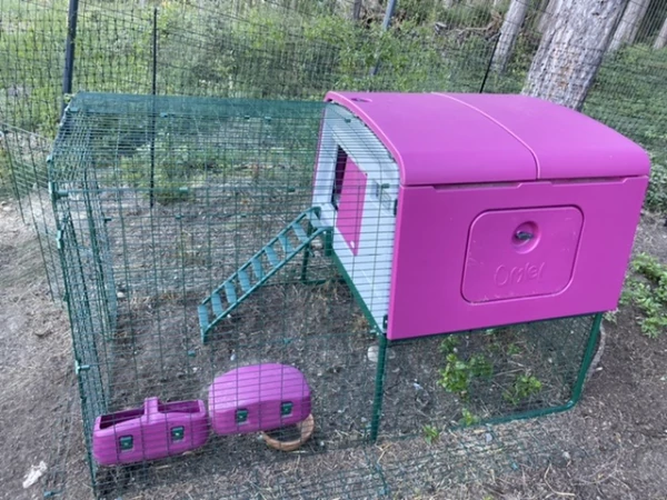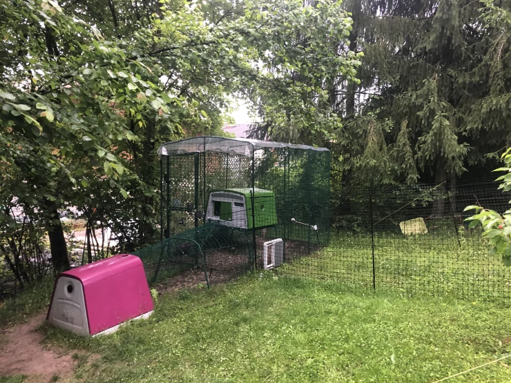 Caption: Een geweldige Omlet setup met kippenrennen en hokken.