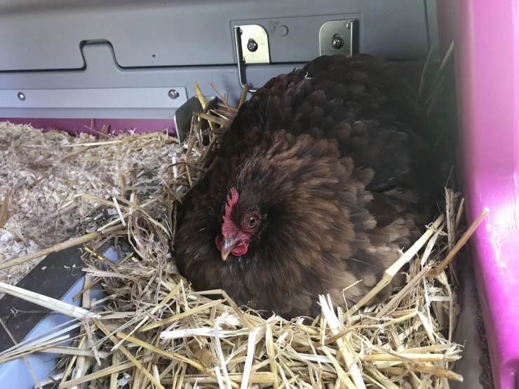 Caption: Dit ontwerp, in tegenstelling tot alle andere, maakt het mogelijk om het achteraan op te bergen en toch toegang te hebben tot de eieren vooraan in de "ren".