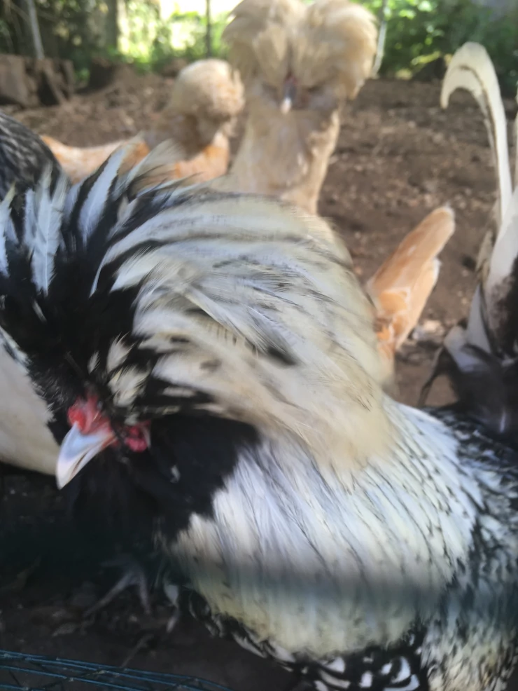 Caption: Coco de witte Sussex X Poolse kriel hen
