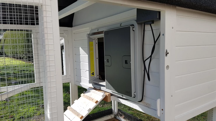 Caption: De Autodoor staat geweldig op elk kippenhok!