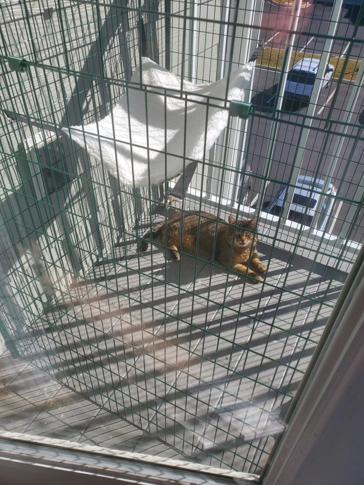 Caption: Er is geen betere plek om te zonnen dan het kattenbalkon!