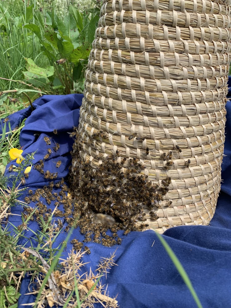 Caption: Skep met succes gebruikt om een grote zwerm te verzamelen