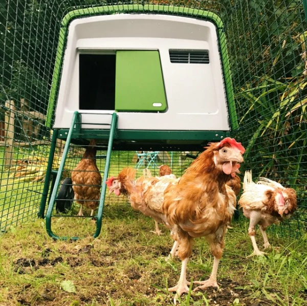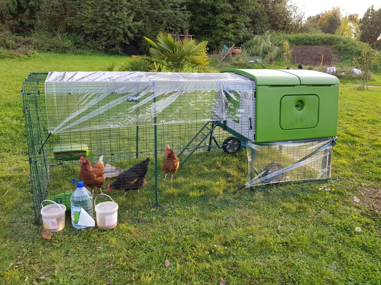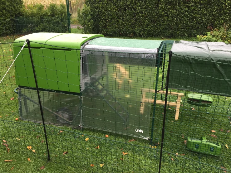 Caption: Perfect om de in- en uitgang van de hennen te beschermen en tegelijkertijd de door de voorruiten gecreëerde ruimte te vergroten voor de grote Eglu Cube .