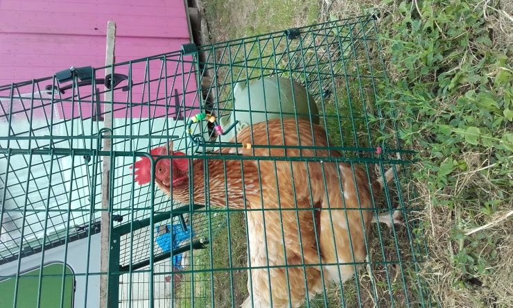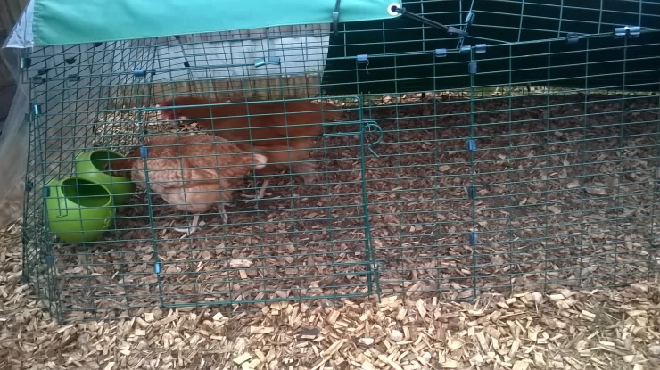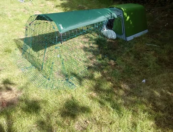 Caption: Eglu Go met 3 meter rennen op harde houtsnippers - een uitstekend, gemakkelijk te onderhouden oppervlak voor kippen