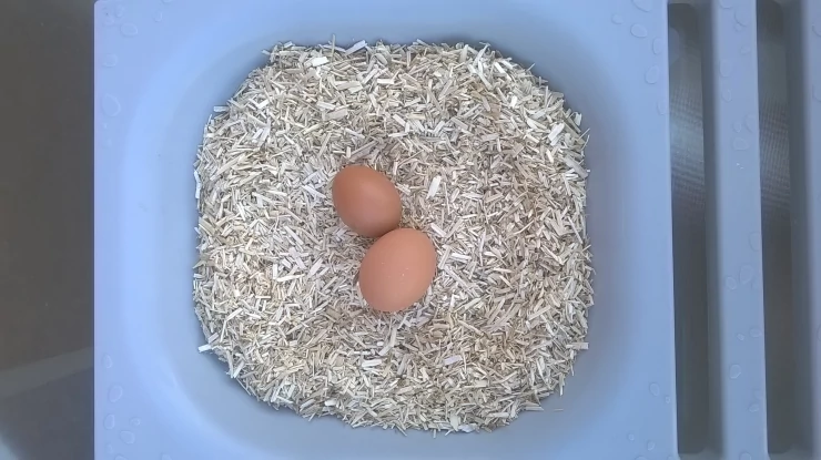 Caption: Aubiose is comfortabel en absorberend in de nestkast - verse eieren met dank aan daphne en marGo!