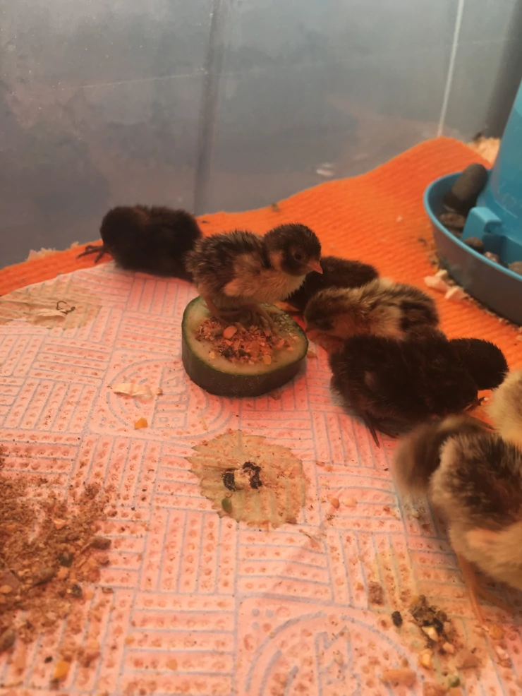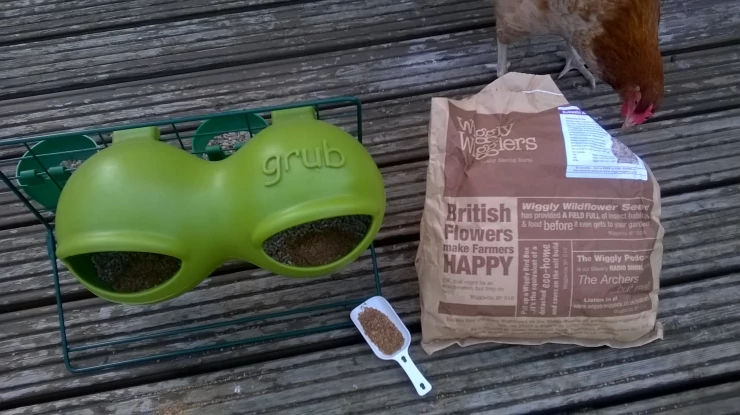 Caption: MarGo probeert zich vol te proppen met bokashi voordat het over haar lagen pellets wordt gestrooid! - brutaal