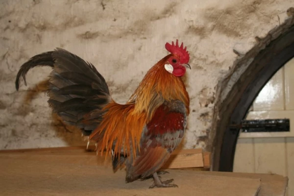 Caption: Dit is freddy blackberry, een trotse haan. hij heeft net 14 kuikens verwekt.