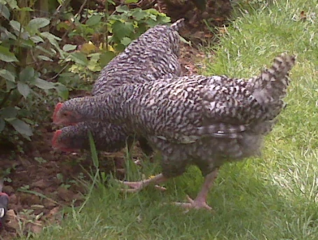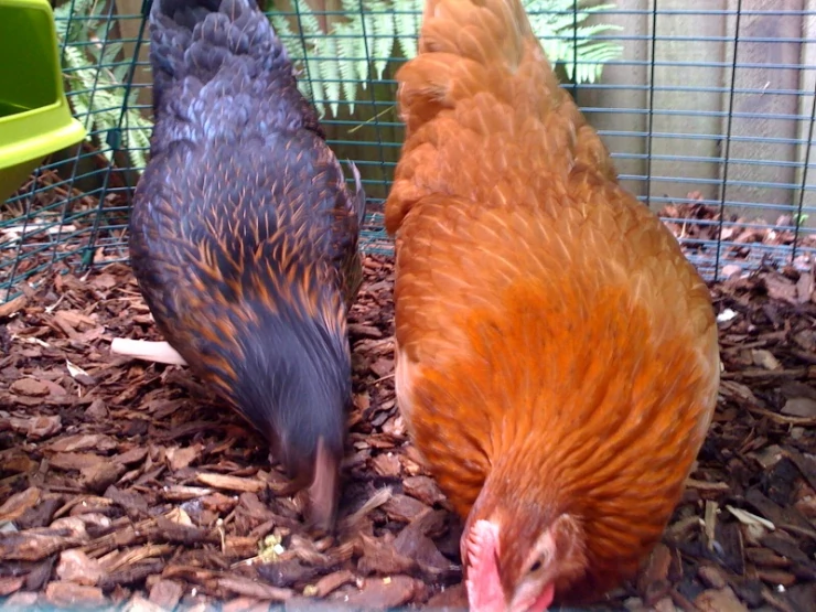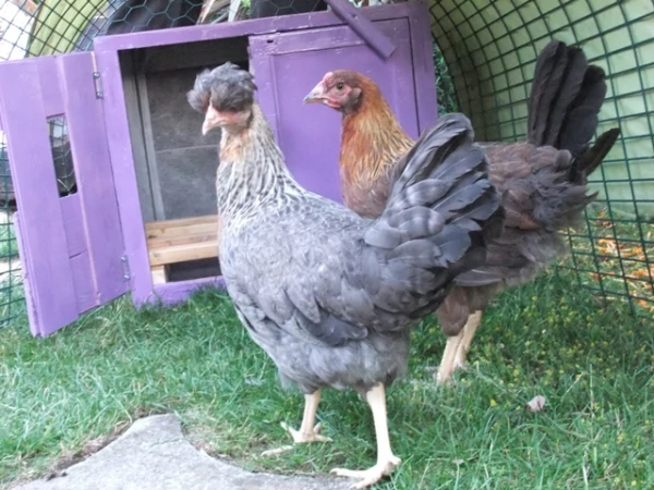 Caption: Flora en fauna (koekoekmarans) aurora (zwarte araucana) en merriweather (bruine hybride)