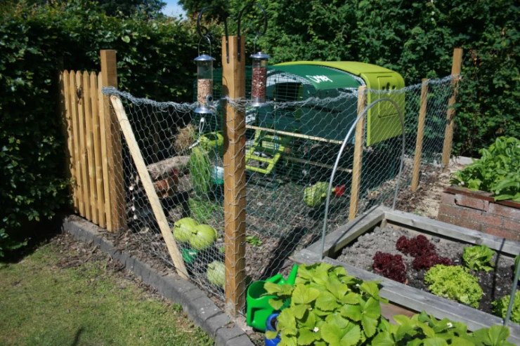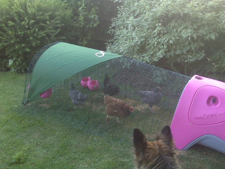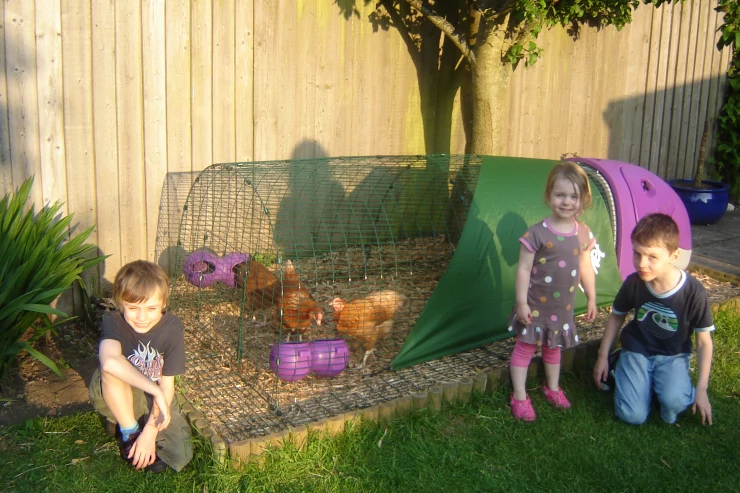 Caption: Onze kippen in onze Eglu Go in het groen!